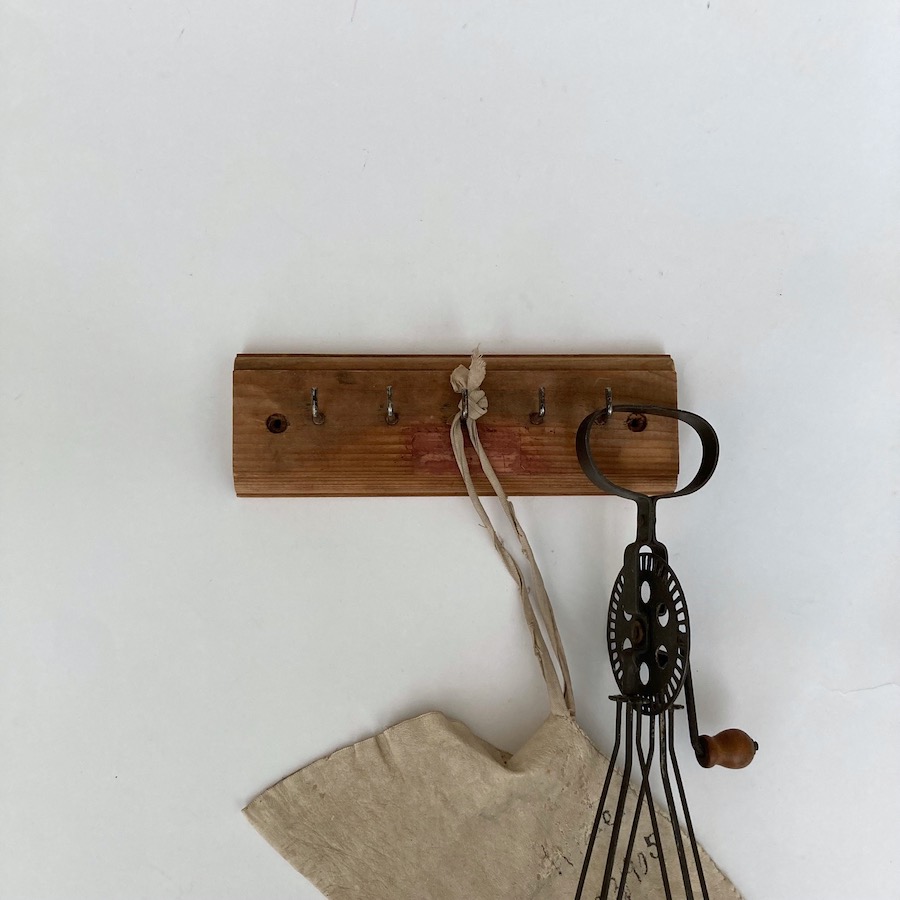 無垢材のベースにフックが取り付けられたヴィンテージのコートフックです。温かみのある木の質感と程よい使用感が良い表情を出しています。ナチュラルな玄関やリビングなどでハンガーものや鍵などかけていただくのに役立ちます。